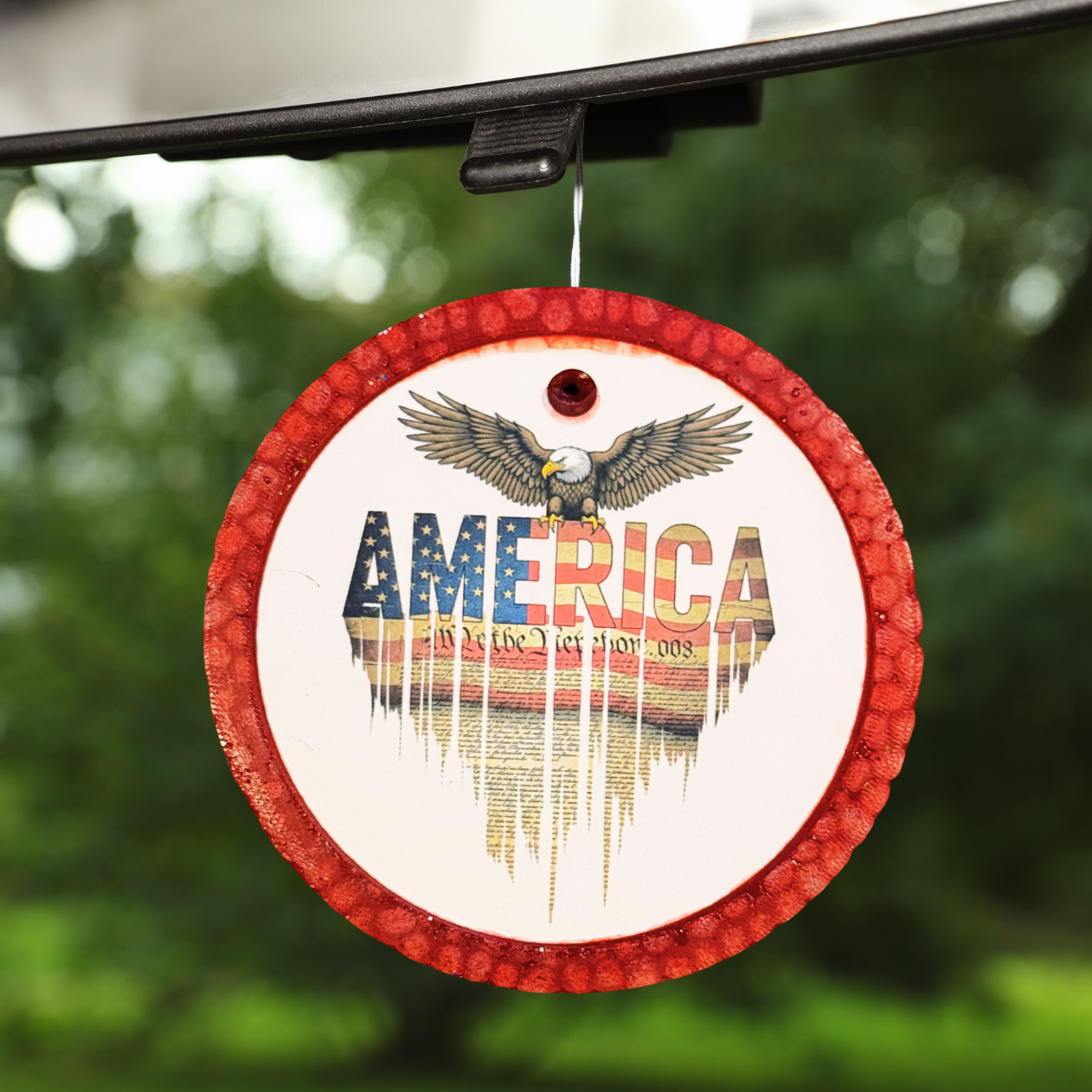 Embrace American pride with this eagle-themed "America" car freshener and a refreshing scent!