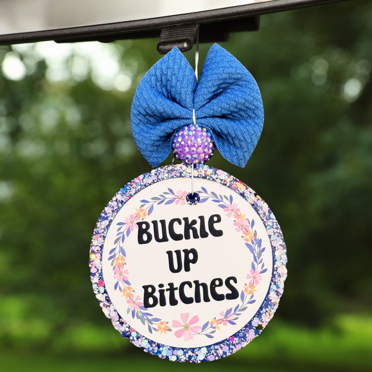 Add attitude and freshness to your ride with the Buckle Up Bitches car freshener. Designed to keep your car smelling great while making a bold statement, this freshener combines fun and function effortlessly. Perfect for those who want to express their personality and enjoy a pleasant, inviting atmosphere every time they hit the road.