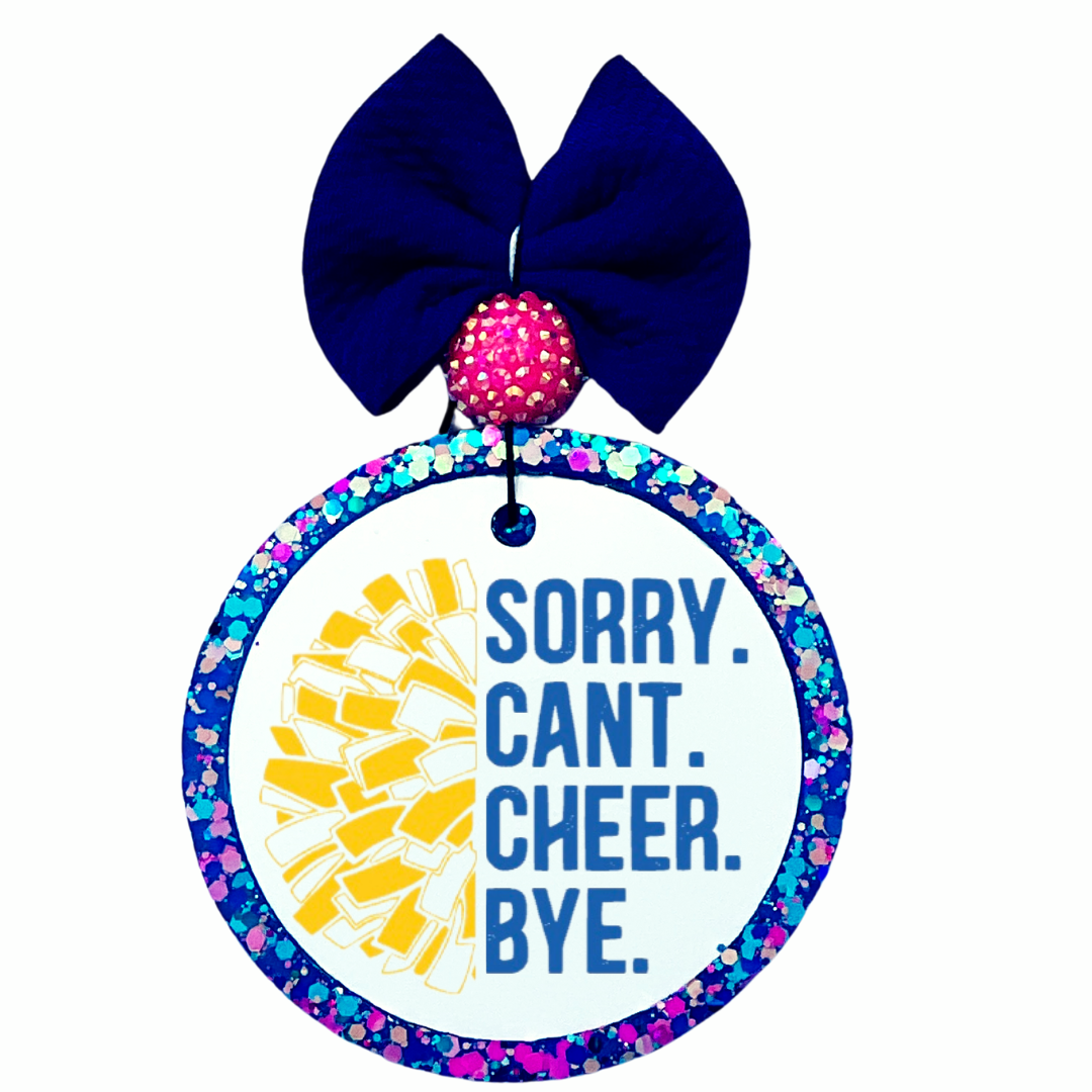 Bring school spirit to your car with the Calvert High School cheerleading colors and a Pom Pom design, featuring the sassy quote "Sorry. Can't. Cheer. Bye."