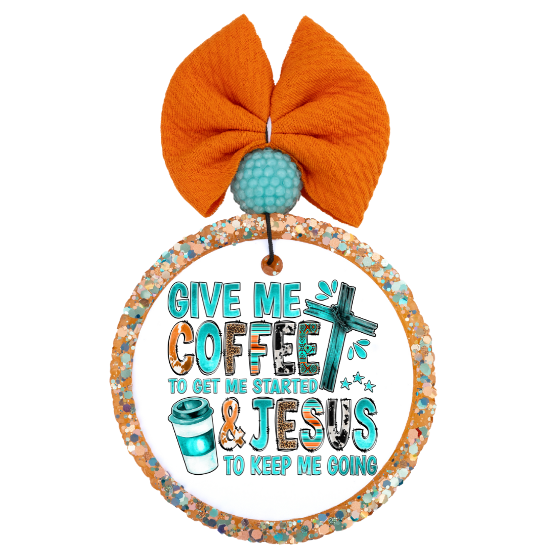Wake up to motivation with our 'Give Me Coffee to Get Me Started & Jesus to Keep Me Going' air freshener. This fun air freshener is perfect for coffee lovers and the faithful alike.