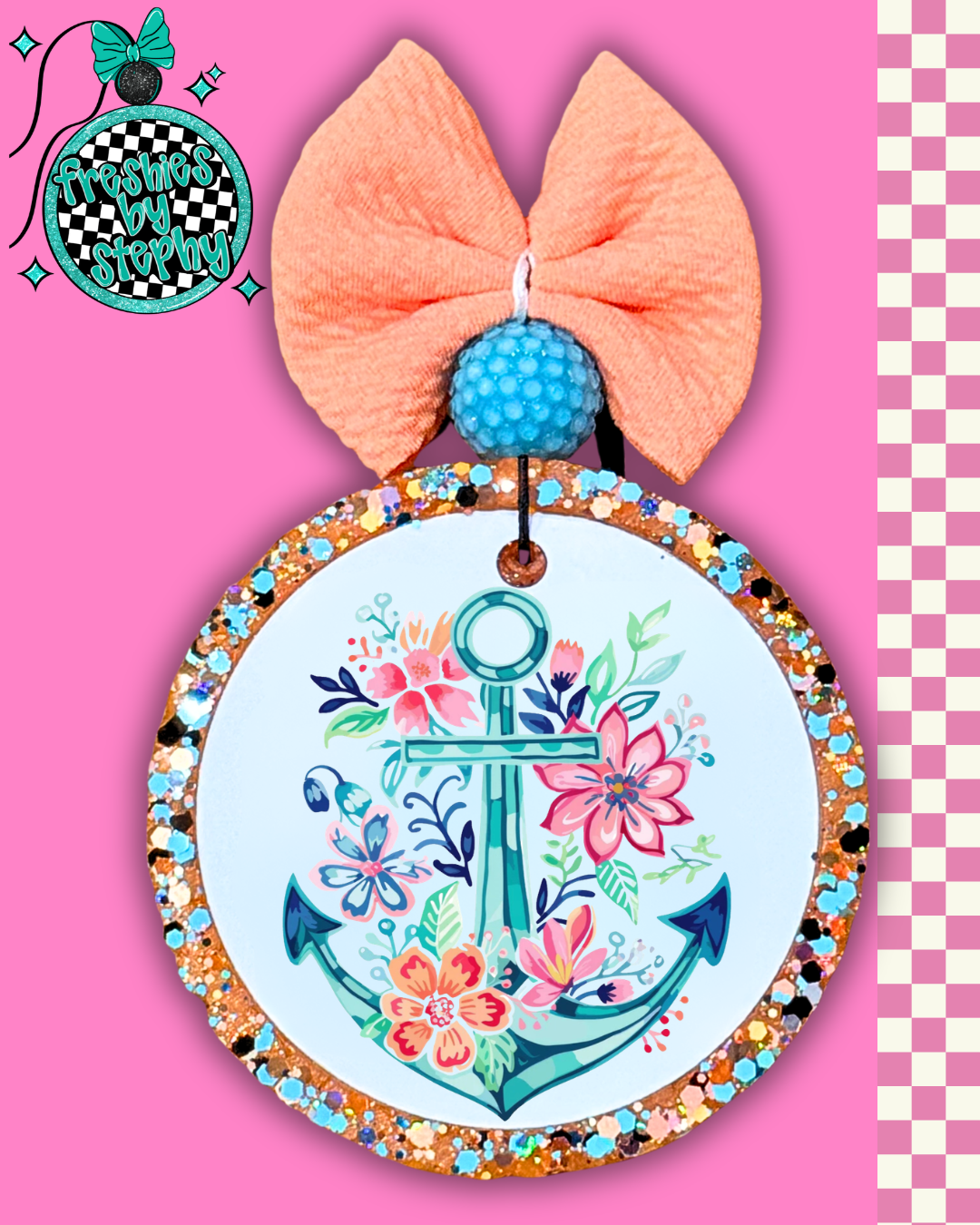 Every freshie is handmade just for you when you order, so the freshie circle, bead colors and bows might be different each time - that’s how I sneak in some extra personality and make each one feel special! 😊