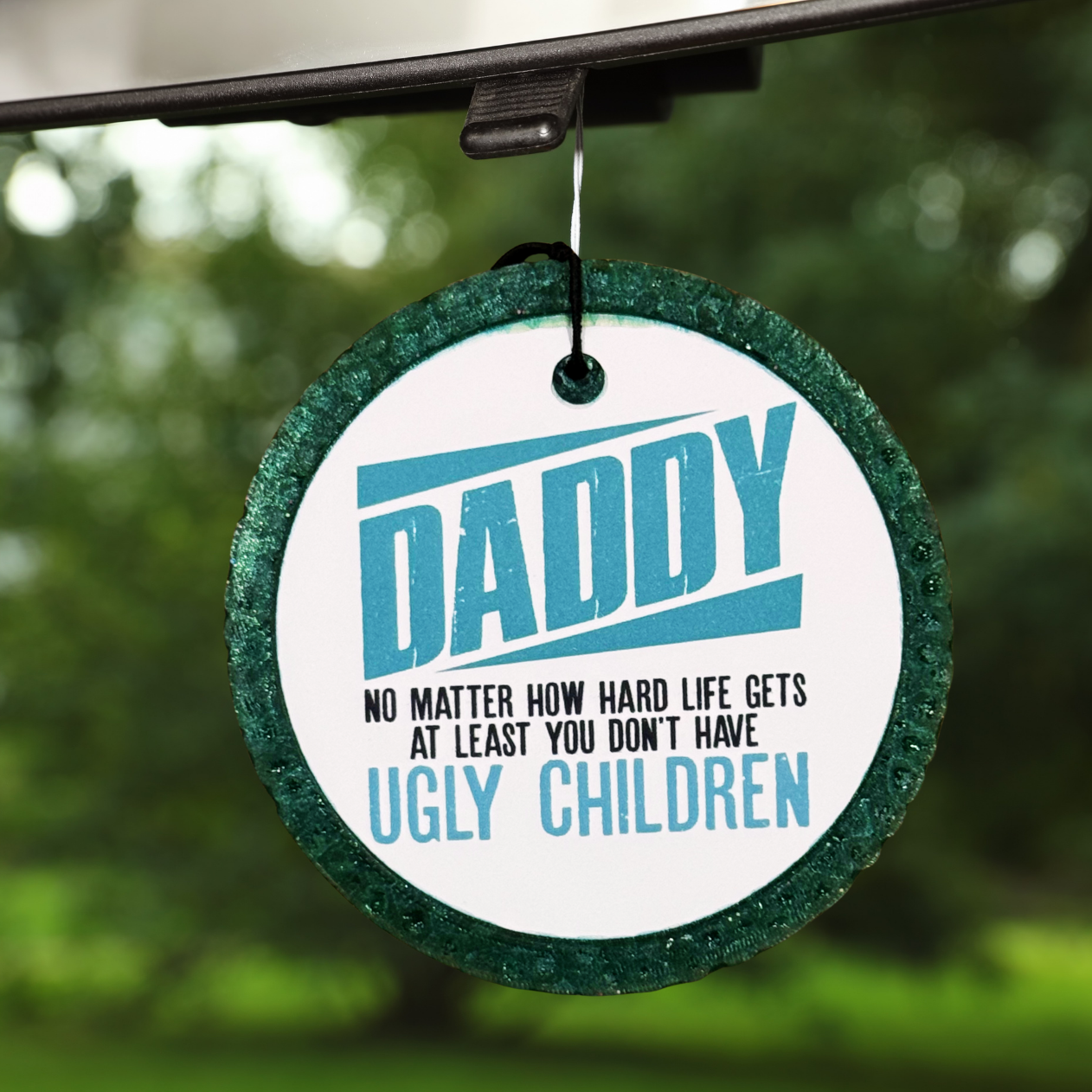This cheeky car air freshener features a bold "DADDY" design and a playful quote to keep you smiling: "No matter how hard life gets, at least you don’t have ugly children." Infused with a refreshing scent, it’s the perfect gift for dads with a sense of humor and a love for fresh vibes!