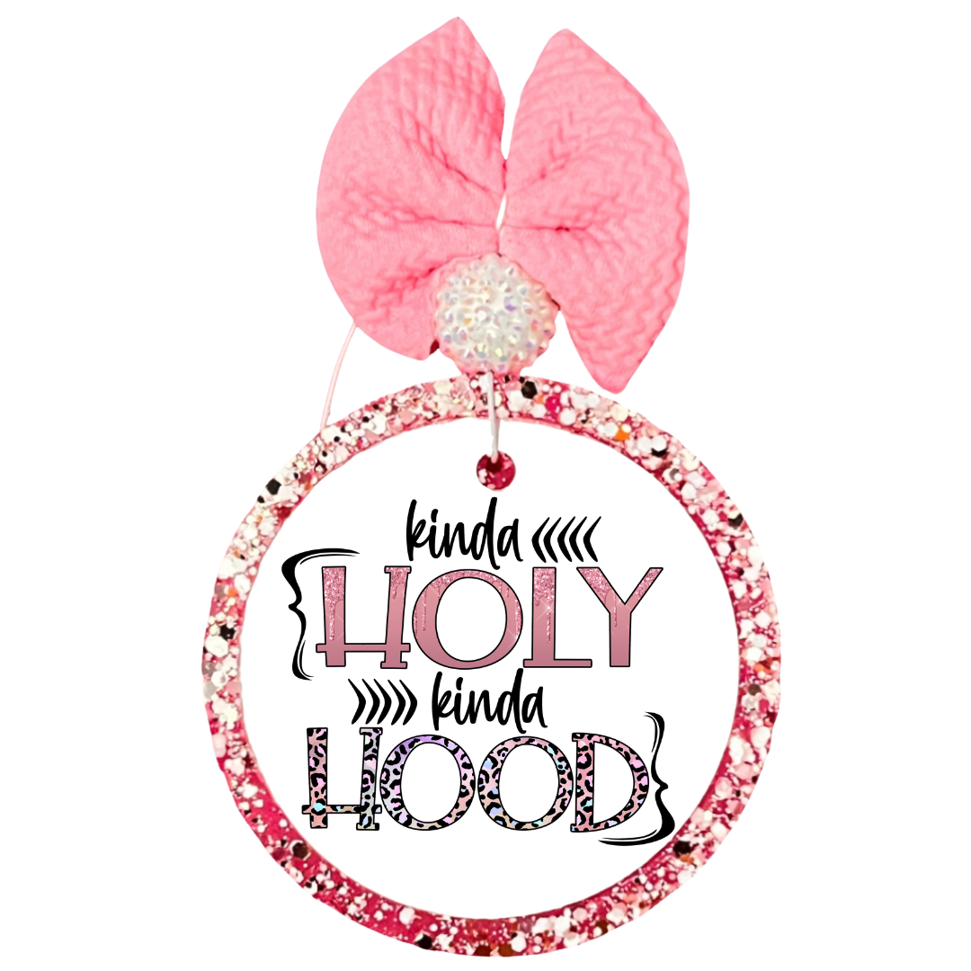 Embrace your unique vibe with our 'Kinda Holy, Kinda Hood' air freshener! This snarky piece blends playful spirit with a touch of attitude, creating a fun environment that keeps your space smelling divine while showcasing your personality!