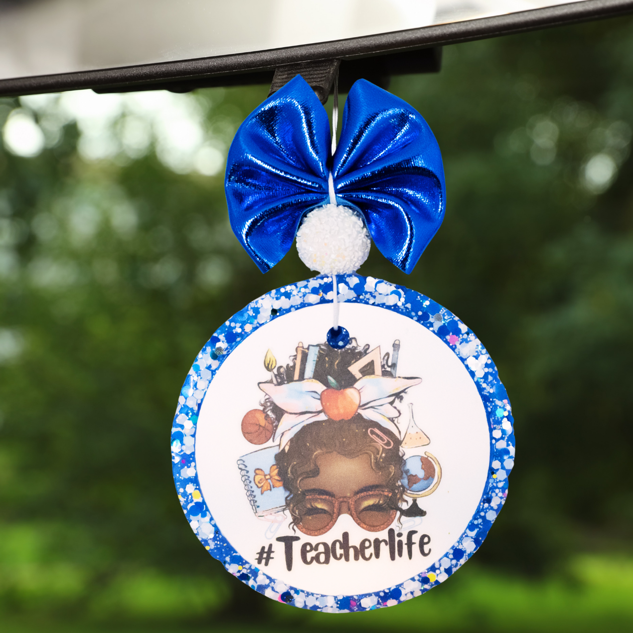 Enhance your car freshener with a sparkling glitter border, beads, bows, all perfectly coordinated to match the colors in the design.