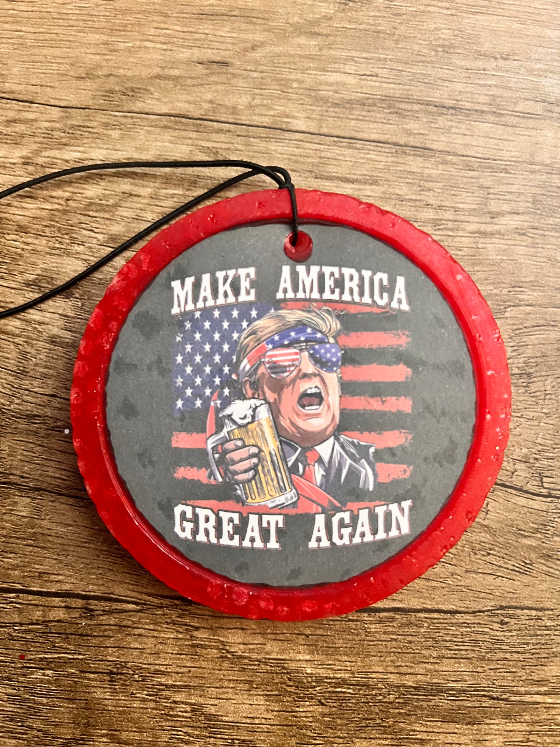 Celebrate your Trump support with this patriotic freshener and a delightful scent!
