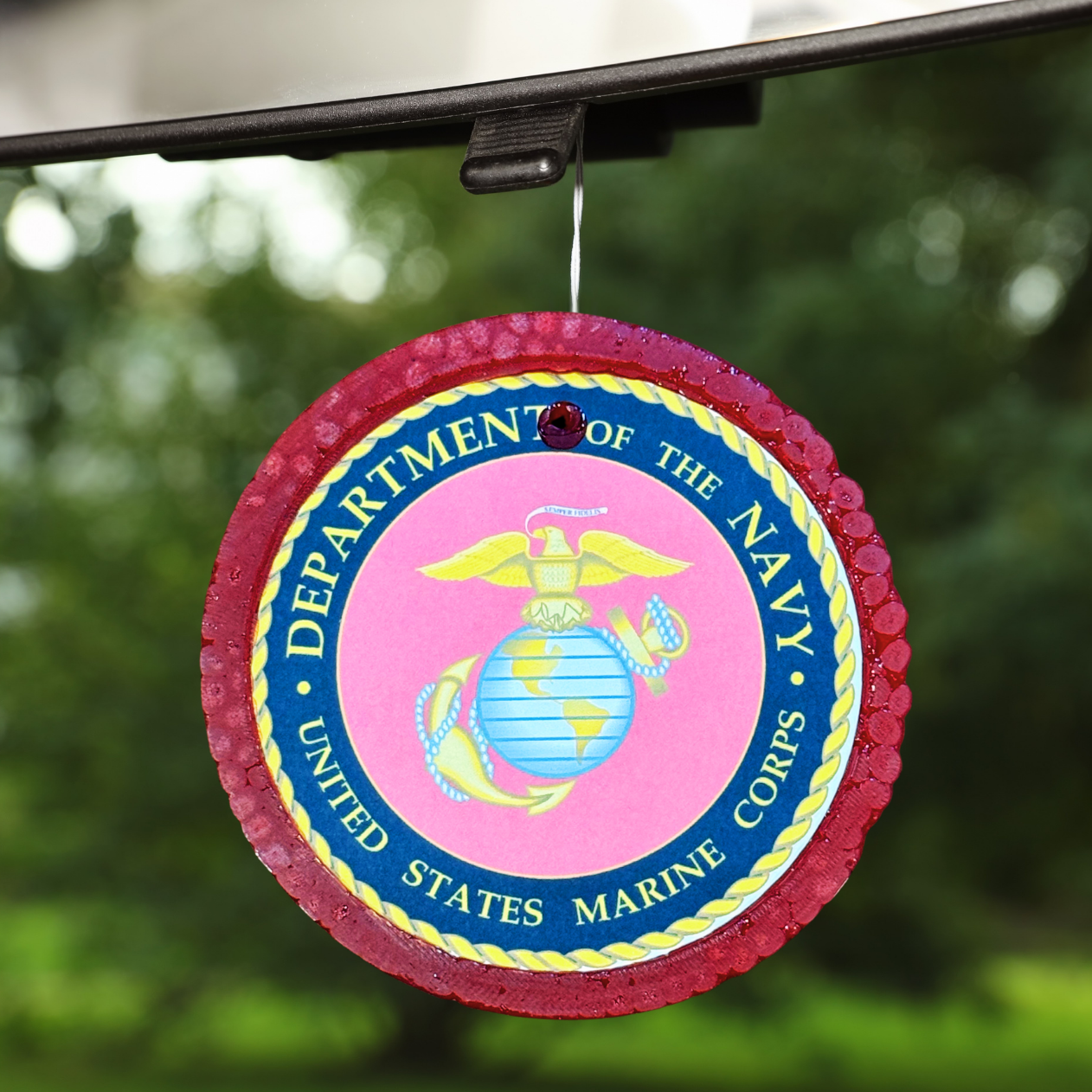 Show Marine Corps pride with this striking car freshener, featuring the emblem and a refreshing scent!
